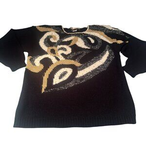 Dana Scott Sweater Women Tunic Vintage Beaded Angora Wool Blend Gold Graphic