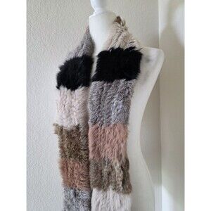 Dana Stein Fur Scarf Neck Warmer Rabbit Fur Wrap Winter Scarf Multicolor Patches