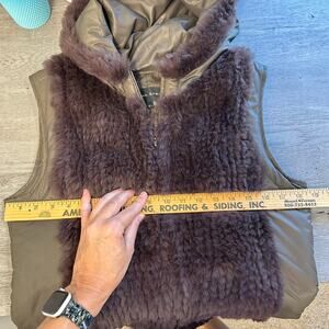 Dana Stein Rabbit Fur Hooded Vest Brown Small