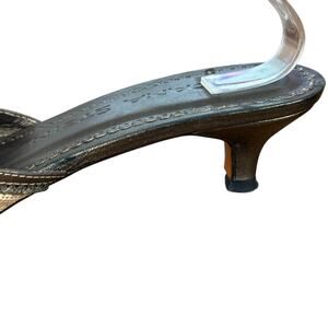 Dana Stein Womens Leather Slip On Kitten Heels Mules Pointed Toe Shoes sz 37 6.5