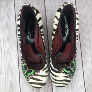 Dana Stein Zebra Butterfly Size 6.5 Heels Wedge