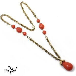 Dana Tyler Gold & Coral Color Bead Necklace & Screw Back Earring Set in Box - Hey Viv !