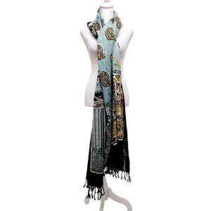 Dana Xu Wool Pashmina Shawl/Wrap With Tassel Fringe Multicolor Geometric Floral