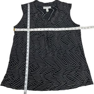 Dana Buchman Blouse V Neck in Black White Textured Leaf Print Sleeveless Pullover Women Large Dressy Casual Summer