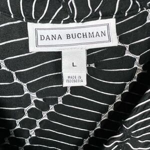 Dana Buchman Blouse V Neck Black White Textured Leaf Print Sleeveless Large