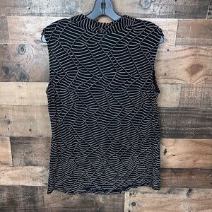Dana Buchman Blouse V Neck Black White Textured Leaf Print Sleeveless Large