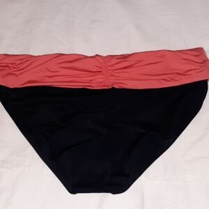 In great preowned condition. The waist looks like a foldover waistband like youd see in yoga pants, except its permanently in place. It has rusching in the back center and on both sides, but only on the waistband. Full butt coverage. Waist measures unstretched 34". Thanks for looking!