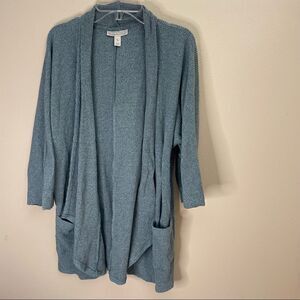Dana Buchman light blue open front everyday casual cardigan. With 2 front pockets.