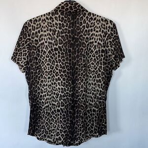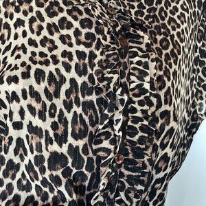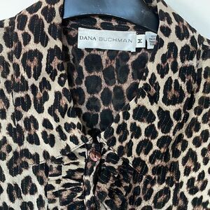 Dana Buchman Stretchy Leopard Shirt with Ruffle Placket, M