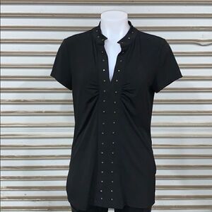 Dana Buchman black top size Small with stud accents There are two studs that are missing near the neck area see last picture “B”