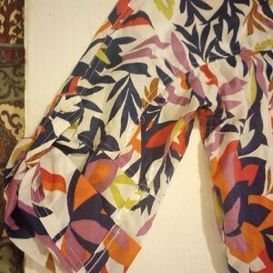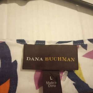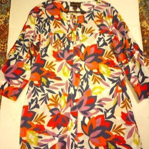 Dana Buchman floral button down with roll tab half sleeve