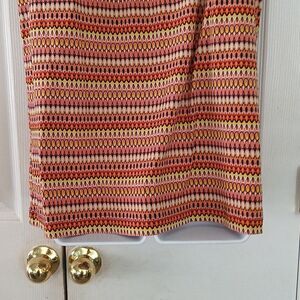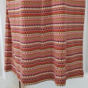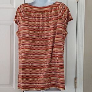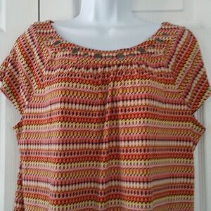 Dana Buhman printed short sleeve blouse with embellished neckline Sz L EUC