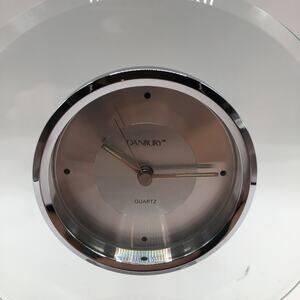 Danbury Glass Clock Quartz Things Remembered Art Deco Brushed Silver Base Custom
