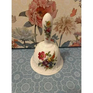 The fine white bone china Hammersley bell in this collection is decorated in a style which has long been popular among England's Staffordshire potteries. The delicately drawn, naturalistically painted flowers are enhanced by lovely molded patterns in low relief. The influence of 18th-century, "famille rose" Chinese porcelain can also be seen. Named for the new opaque rose shades which were introduced around 1730, it is dominated by shades of pink and carmine, complemented by shades of mulberry, yellow and violet blue. Like the famous Chinese porcelain, this fine Ham-mersley bell is remarkable for the freshness of its colors.