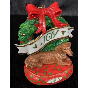 Danbury Mint Dachshund Joy Wreath & Dog 2005 Christmas Ornament & Box READ