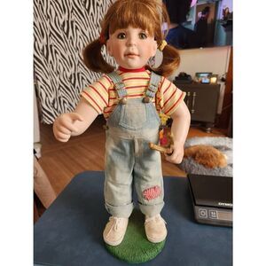 Danbury Mint Porcelain Doll by Kelly RuBert. Girl playing with slingshot in bib