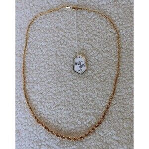 The Danbury Mint Vermeil Solid Sterling Silver Graduated Singapore Chain Necklace is a luxurious and elegant piece of fine jewelry. Featuring a lobster closure, this 18-inch necklace is crafted from high-quality precious materials, specifically solid 925 sterling silver dipped in 14K gold. It is signed by the Danbury Mint brand and is perfect for any occasion, adding a touch of sophistication to any outfit. This elegant chain style necklace is a timeless and classic addition to any jewelry collection.