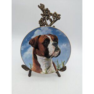 This stunning Danbury Mint collector's plate features boxers by Simon Mendez titled "His Masters Call." Ideal for dog lovers and plate collectors alike, it showcases exquisite artistry and craftsmanship, making it a beautiful addition to any home decor.