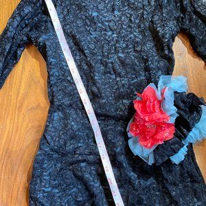 Curtain Call black lace flower unitard dance costume, size AS. Excellent, pre-owned condition; only worn on stage once. Have this same costume also in a CL.