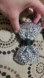 The front is covered with white crystals with another level of ab crystals in the back for extra sparkle. The strap can be adjusted to fit a larger neck. In pictures it ia set to the smallest size.