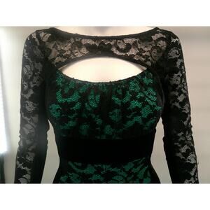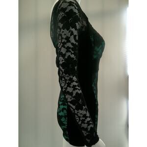Detailed Description: Long sleeve unitard with lace overlay. Keyhole opening on front.