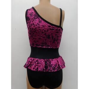 Brand: AWCT T1411 Size: Adult Small Adult Colors: Pink Pink Black Great For: Jazz Tap Latin Musical Theater Clogging Features: Cheetah Sleeveless Spandex Sequined leopard print leotard with attached backskirt.