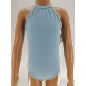Brand: Honeycut Size: Little Kid Small Child 4-6 Colors: Lt Blue Great For: Ballet Tap Pageant Tap Features: Solid Camisole Halter Cotton Baby Blue Dance Leotard with Halter Neck Line and Mesh tank Sleeves with a keyhole back opening