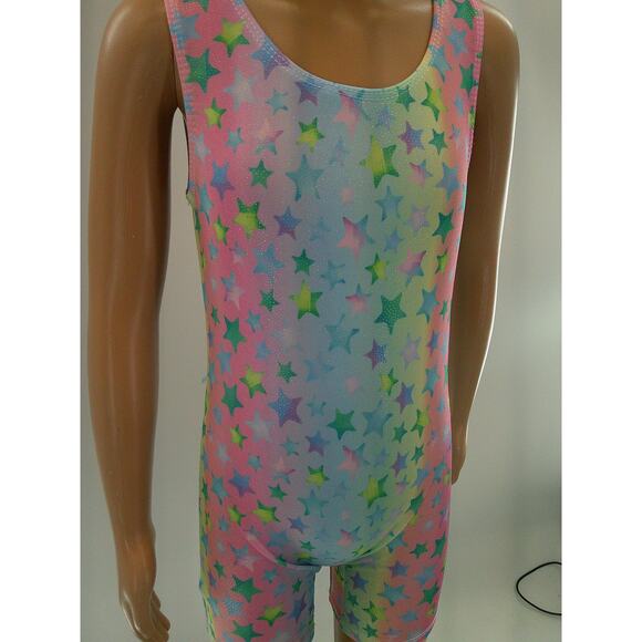 Dance Gymnastics Leotard Biketard Intermediate Child 6-7 Pastel Rainbow Stars