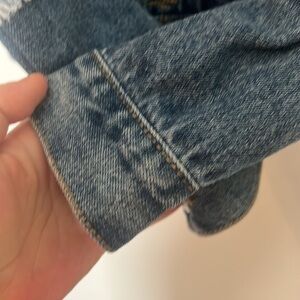 Dance & Marvel Distressed Two Toned Jean Jacket Size Small. P2P is 21 inches.