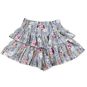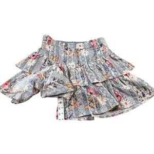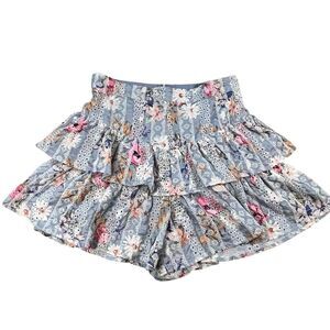 Dance & Marvel Floral Ruffle Layered Light Blue Chambray Lace Shorts Size Large