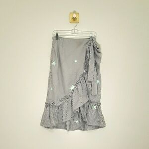 Dance & Marvel NWT Midi Skirt Medium Black White Stripe Floral Ruffle Embroidered Asymmetrical Cottagecore Coquette Prairie Bold Boho Festival Coastal Cowgirl Western Country New