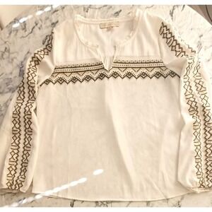 Dance & Marvel Women Large Shirt Top Ivory Embroidered Bohemian Festival
