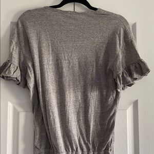 Dance & Marvel Grey Patch Ruffle Sleeve Bodysuit. Holes. Feels like t shirt material. Made of cotton and polyester. NWT. Size M