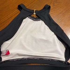 Beautiful floral with black trim dancer’s halter. Daughter wore for one photo shoot and one dance convention.