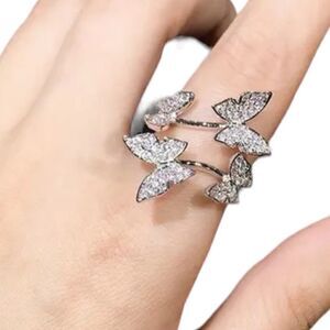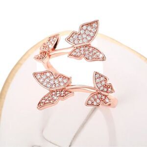 Dancing Butterfly Rose Gold Tone Crystal Adjustable Ring NWT