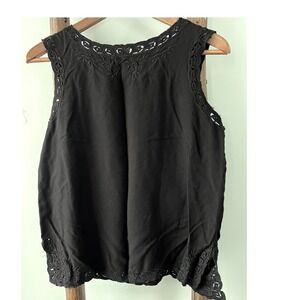 Keywords: tank top, sleeveless top, black tank, embroidered top, casual tank top, summer top, womens top, dancing heart, embroidered tank, black sleeveless top, size M, medium tank top