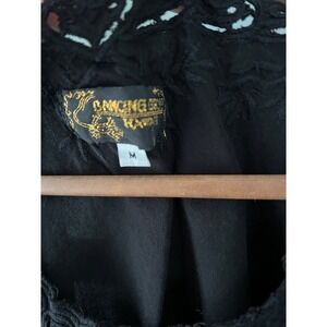 Dancing Heart Tank Top Embroidered Sleeveless Black Casual Top Size M