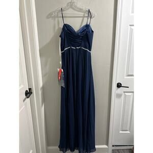 Make your grand entrance and capture everyone's attention in this Prom Dress by Dancing Queen 4030. Feel like a star in this sleeveless, sweetheart shaped neckline with spaghetti shoulder straps, seam fitted bodice and features a shimmering slender waistband. The dress flaunts a classy corset lace-up back detail and a flowy full-length A-line skirt. You will definitely make a statement in this Dancing Queen look.