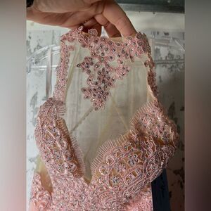 Dancing Queen Long Gown Dress Beautiful Pink Gems Lace Chiffon Prom Bridesmaid S