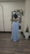 Illusion sequin bodice with a flowing light blue skirt. Ideal for prom or formal events. The skirt has a front slit. This long dress is new, but it has been tried on at the bridal shop. The original.tags were removed to add the bridal shop's tags. No rips, no stains.