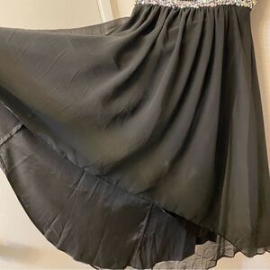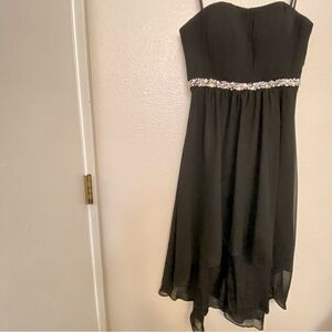 Dancing Queen pleated black strapless hi low chiffon formal Dress rhinestone -S
