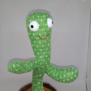 Famous from Tik Tok, dancing & singing cactus plush. It sings many different songs. It has two different function buttons. One will get him to sing and dance several different songs. The other button gets him to mimic whatever sound he hears. Battery compartment is corrosion free. Measures approximately 13" in height. Tested and fully working!