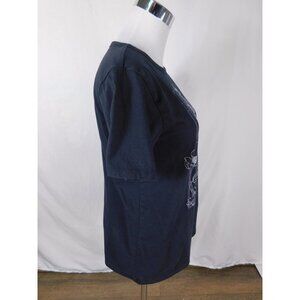 Dancing Skeleton Shirt Large Black White Graphic Tee Floral Cosmic Art