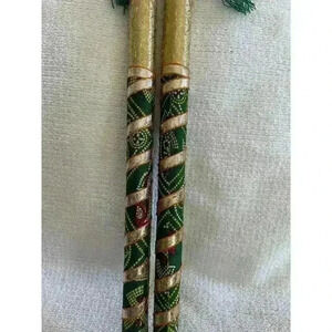 Dandiya Wood Percussion Sticks Narvratri Garba Dance Gota Gold And Green Lace
