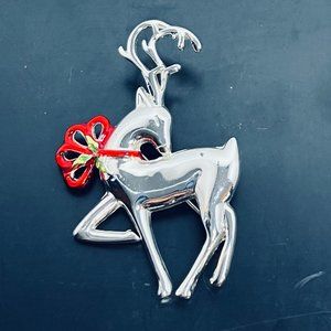 Danecraft Silver Tone And Enamel Reindeer Brooch