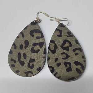Dangle Calf Hair Teadrop Leopard Animal Print Earrings in Green