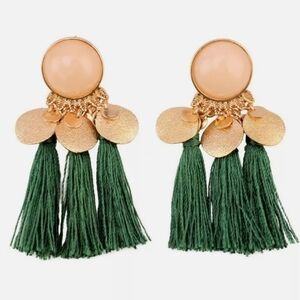 Dangle & Chandelier Statement Bohemian Tassel Drop Earrings Forest Green