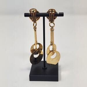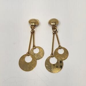Dangle Disc Gold Tone Drop Clip On Earrings Casual Retro Statement Jewelry