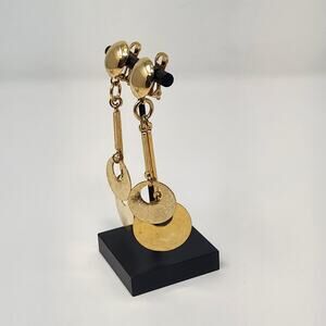 Dangle disco gold tone clipon clip on earrings. Fashion Casual Jewelry Retro Playful Statement