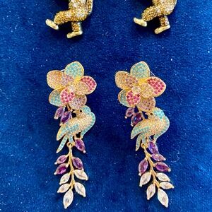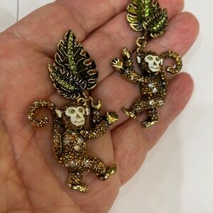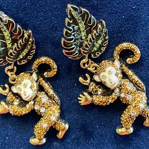 Unsigned dangle drop Earrings: The monkey earrings are definitely a statement earring, totally awesome in person and drop 2.5” from a post. The blue bird drops 3”.